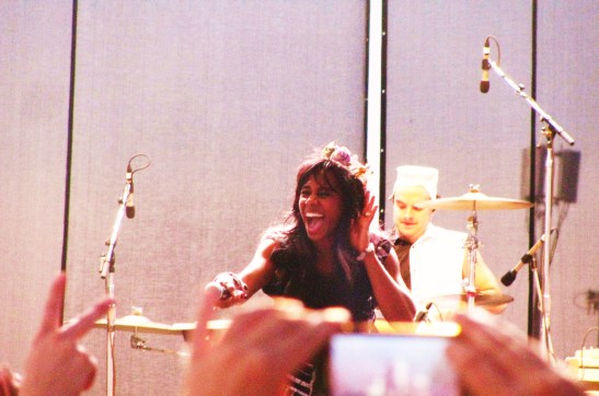 “Was that rain?” she screamed over Theophilus London’s lyrics about the streets of New York.