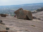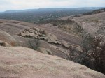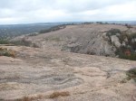 Without significant sunlight, the granite becomes chilly to the touch. On that day, I decided to take off my sneakers and walk barefoot for a while. It was a remarkably pleasant sensation–a bit like walking on stones under a cool stream. My boyfriend did the same and we wandered around like small children, entranced by the different sensations created by the variations of the stone. At one point I came across an area where the rock formed a wall about 4 feet in height, at the base of which was a soft dip carved out by a flow of water across the surface of the granite. I suddenly decided to lie down in the dip. The rock felt cold against my body heat, but the wind was broken by the rise of the dip’s edges, and I felt slightly warmer overall. More importantly, I could no longer be seen by anyone else walking along the rock or staring from a neighboring mountainous boulder. I imagined what it would have been like as a Tonkawa, waking from a night camping alone and looking across the horizon at the movements of encroaching Spanish colonizers.