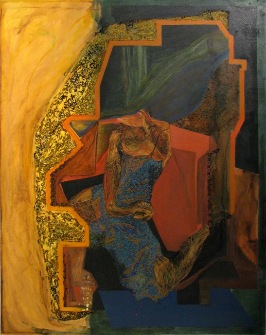 Amigh, who grew up in Iran, moved to the U.S. after earning her bachelors and masters degrees in Tehran. “I wanted to experience a different country, to know about their art.” She began researching art programs and was drawn to Boston University’s MFA program because she wanted to work with the artist John Walker. While she has experimented with installation and other mixed media, Amigh feels she is ultimately a painter. “I can express myself in a painting language more. It’s not just about painting, it’s about life, about what I want from art.”