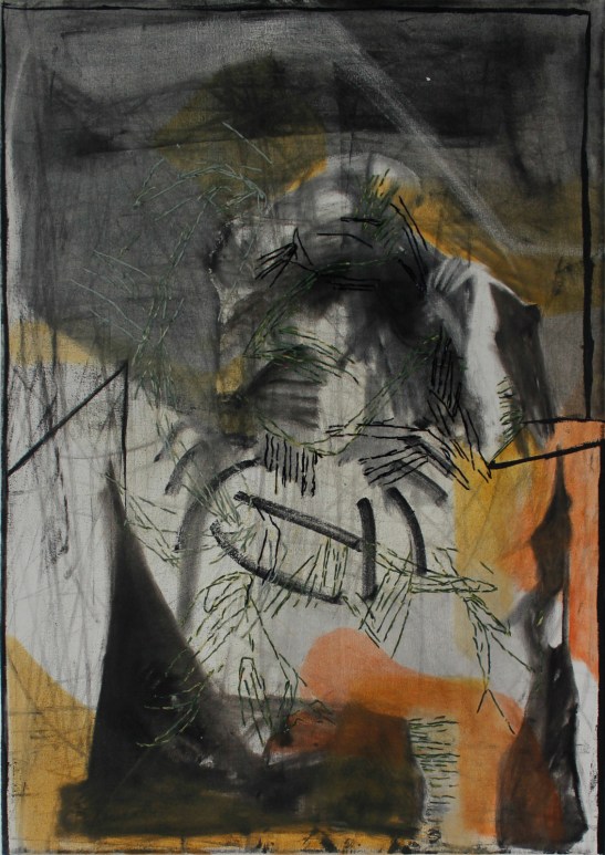Amigh’s paintings are most centrally about her experience in her home country of Iran. Her paintings are deeply textured and richly colored; a digital screen cannot do justice to the tactile finery of her work. They remind us of the materiality of our lives, our art, and our all too fragile human bodies.