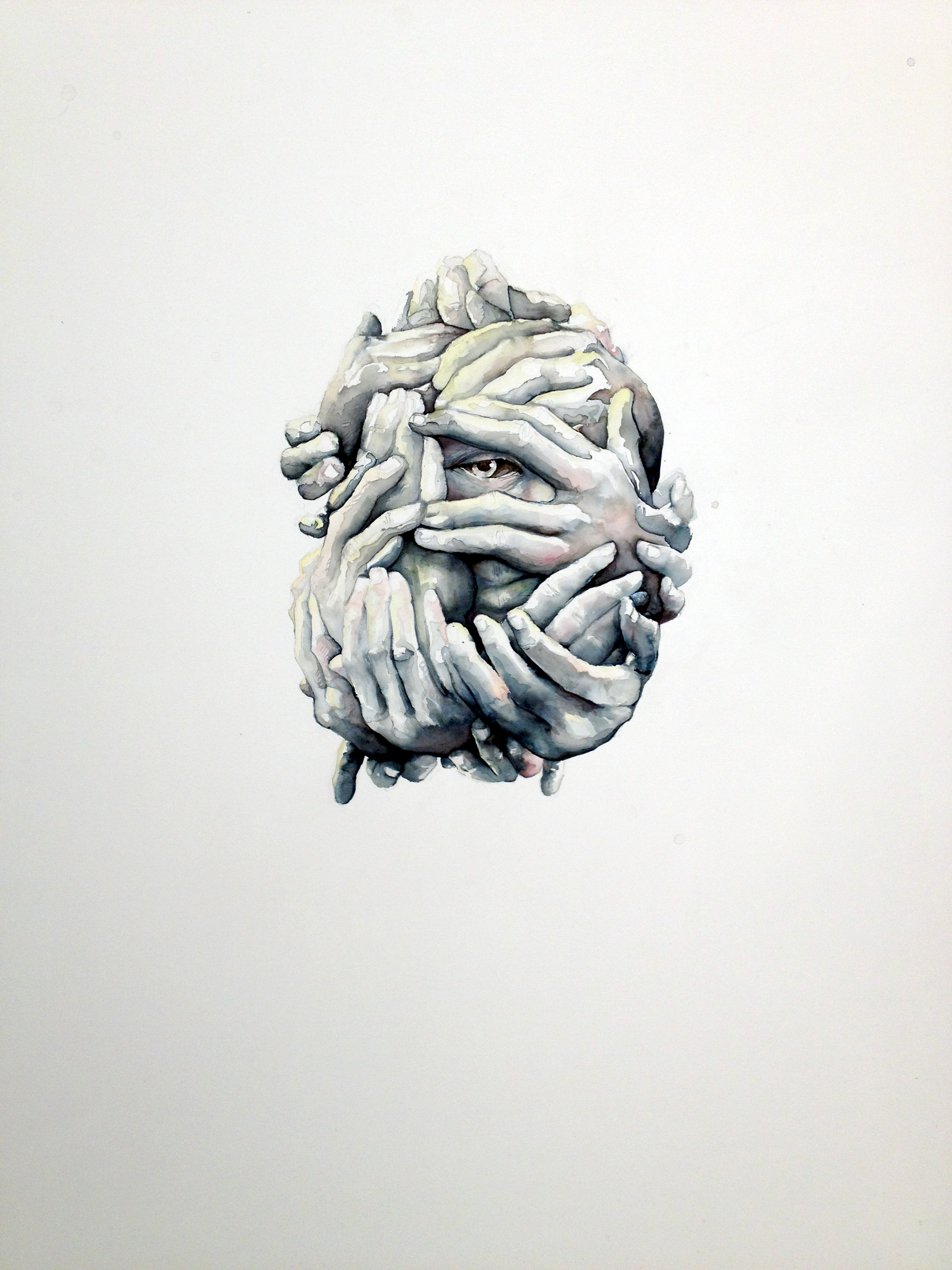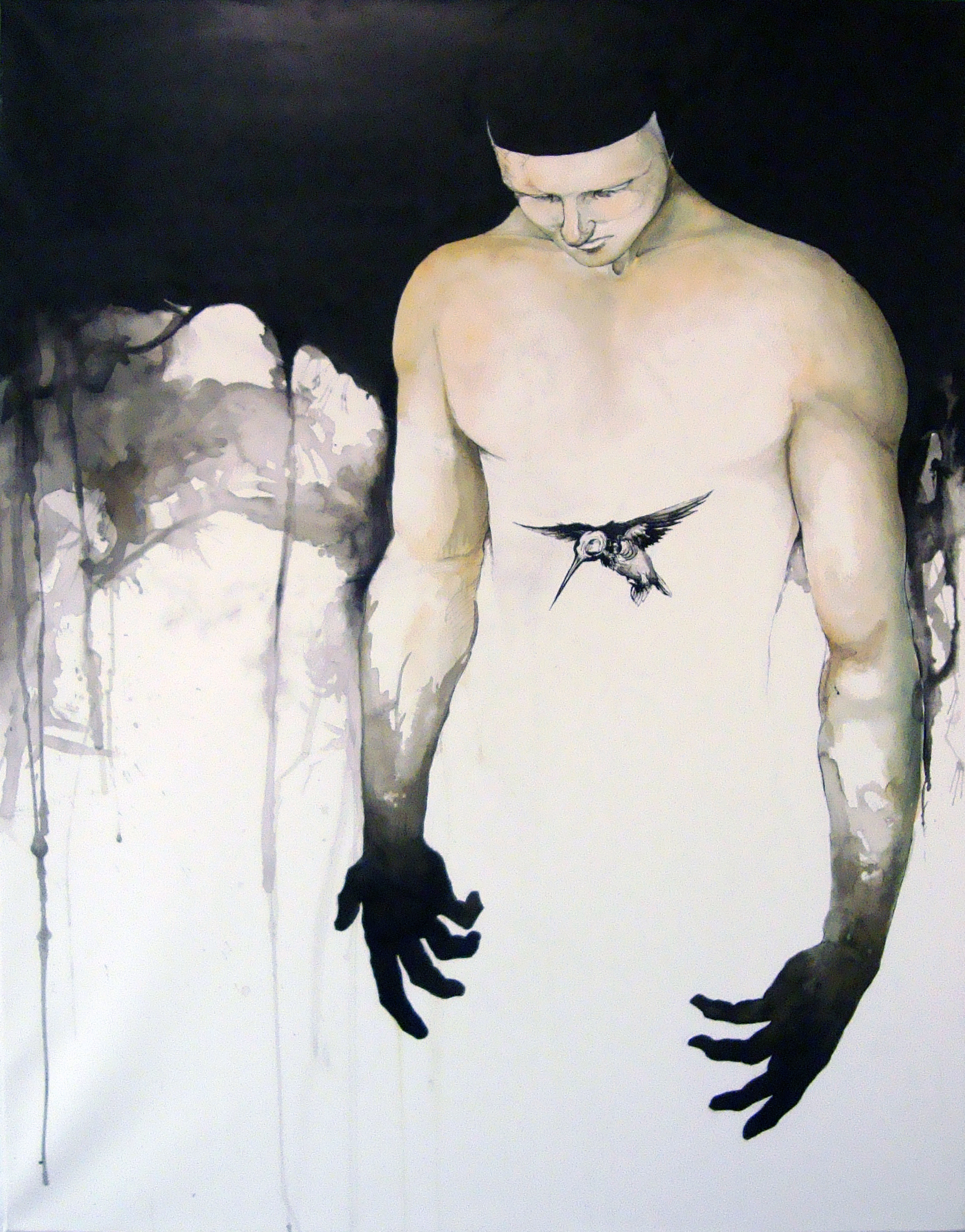 Art school was “very rigorous,” Ramey reflects, speaking of his time in the New York State College of Ceramics at Alfred University. He remembers staying up all night working on his art; teachers tearing him apart in review. “In art school, they don’t push you to do any one thing, but around junior year they ask you what you want to do with your life.” If you say “to just be an artist, they kind of look at you sideways, ‘good luck with that.’” There was a “reality check with the artist profession” and he “was aware of that reality.” Ramey seems sincere when he admits that he “did not have delusions that I would have a sold out show in NYC right away.” He fully expected “having a second job” and maybe “getting a few things shown and sold” along the way. After Alfred, Ramey went on for his post-baccalaureate at SMFA. You can see this extensive training in Ramey’s detailed work. His representations of the human form are studied, with carefully chosen lines, colors, and shades that reflect the Renaissance influence of his early art education.