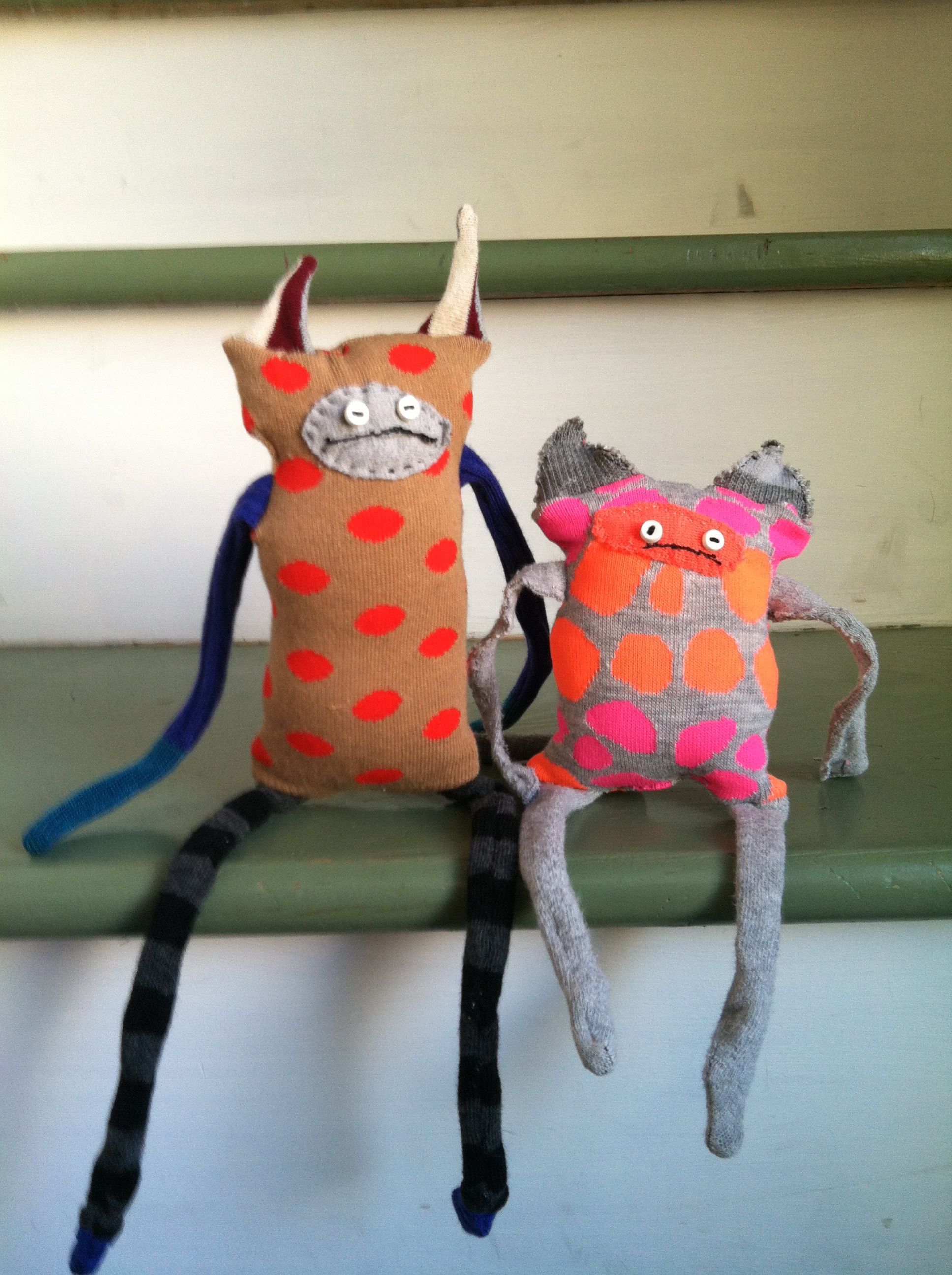 I tend to work rather erratically, where I’ll furiously make art for three days and then won’t do a thing for a week. I live off the momentum that builds when I’m making art, but it’s also exhausting, and I wear myself out. Making art can be lonely, so I tend to get more done when I’m creating alongside a fellow artist. I’ve recently been working on making sock critters and sock monstahs to restock my Etsy shop, and I’ve been inviting my friend over to crochet next to me while I sew. We make a cozy fort in my living room and eat cheese and olives and listen to Motown. Before I know it, six hours has gone by and we’ve both gotten a ton of art done. We call each other art-ners. I am lucky to have a lot of different artist friends in my life, and we all alternately encourage or yell at one another to keep each other motivated. Making art is sometimes a group effort.
